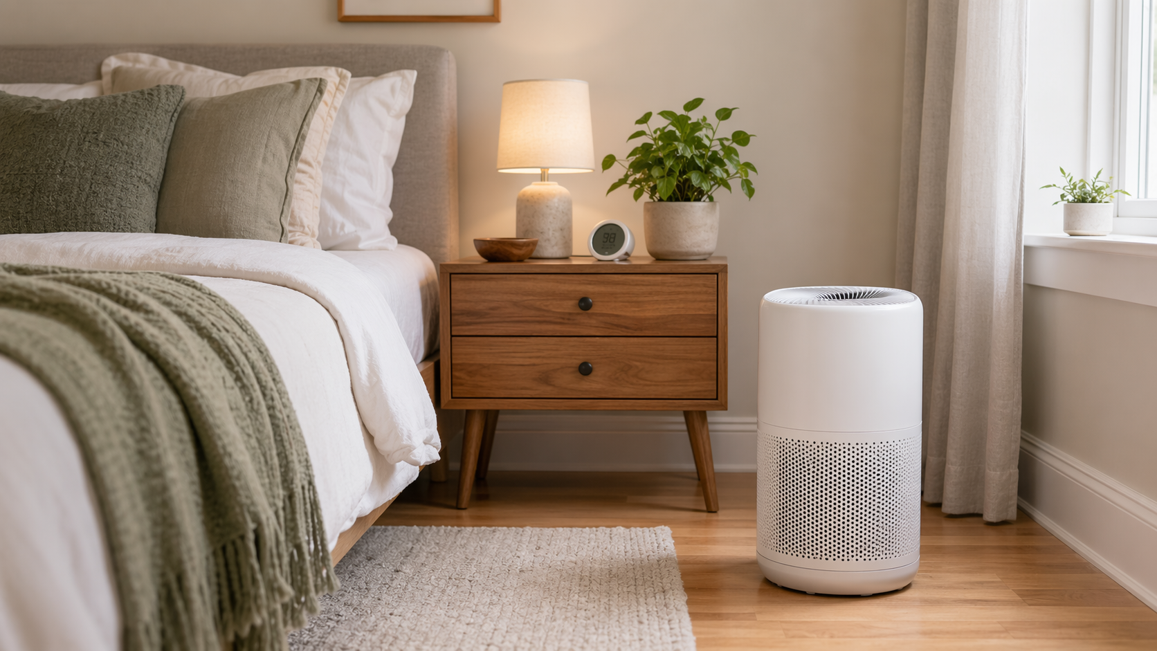 Simple sizing, placement, noise, and filter tips for bedroom air purifiers.